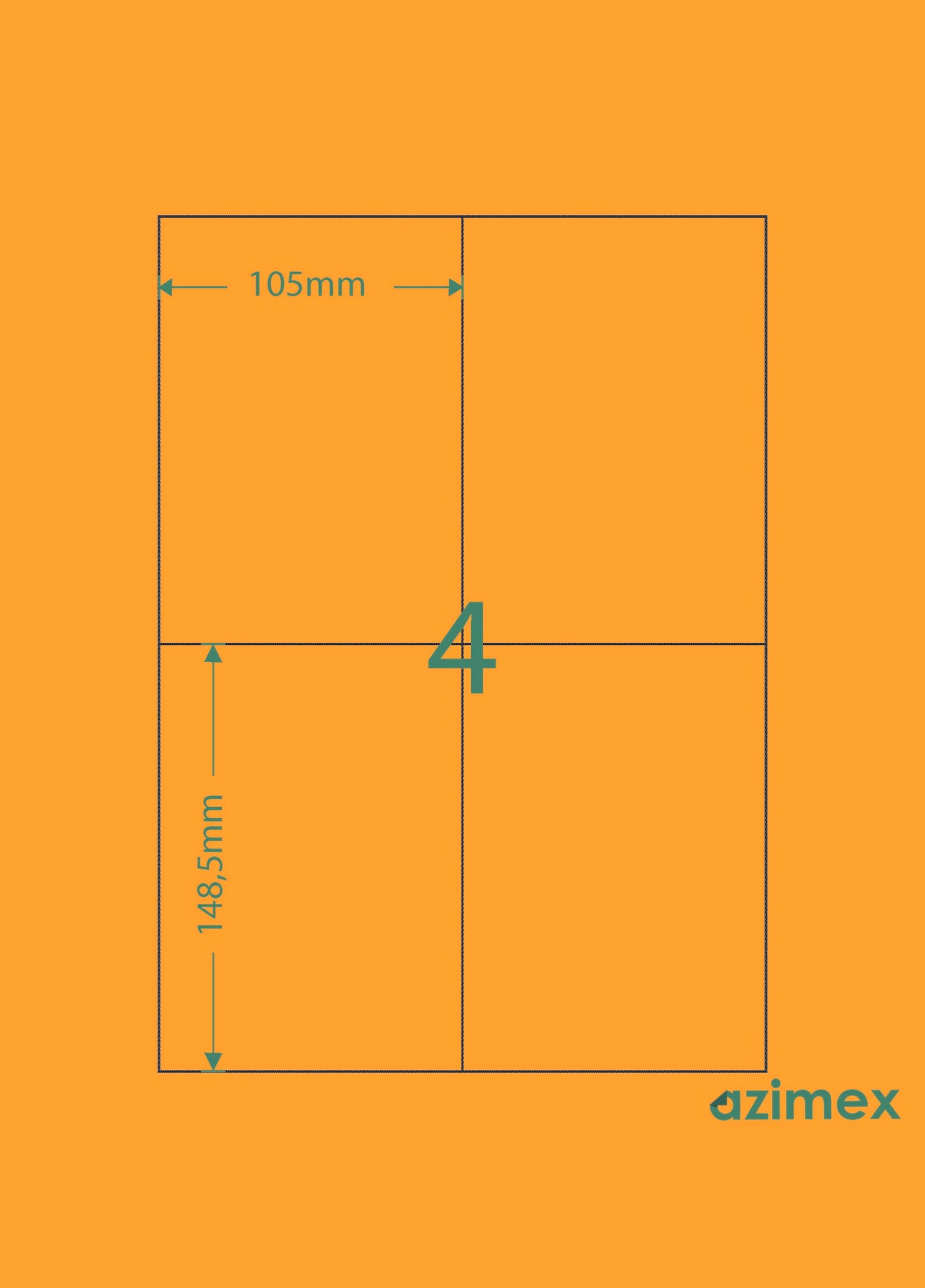A4-4 labels, 105 x 148,5 mm, Azimex Labels on A4 sheet, 4 labels, multi-colored neon paper, 100 sheets/box