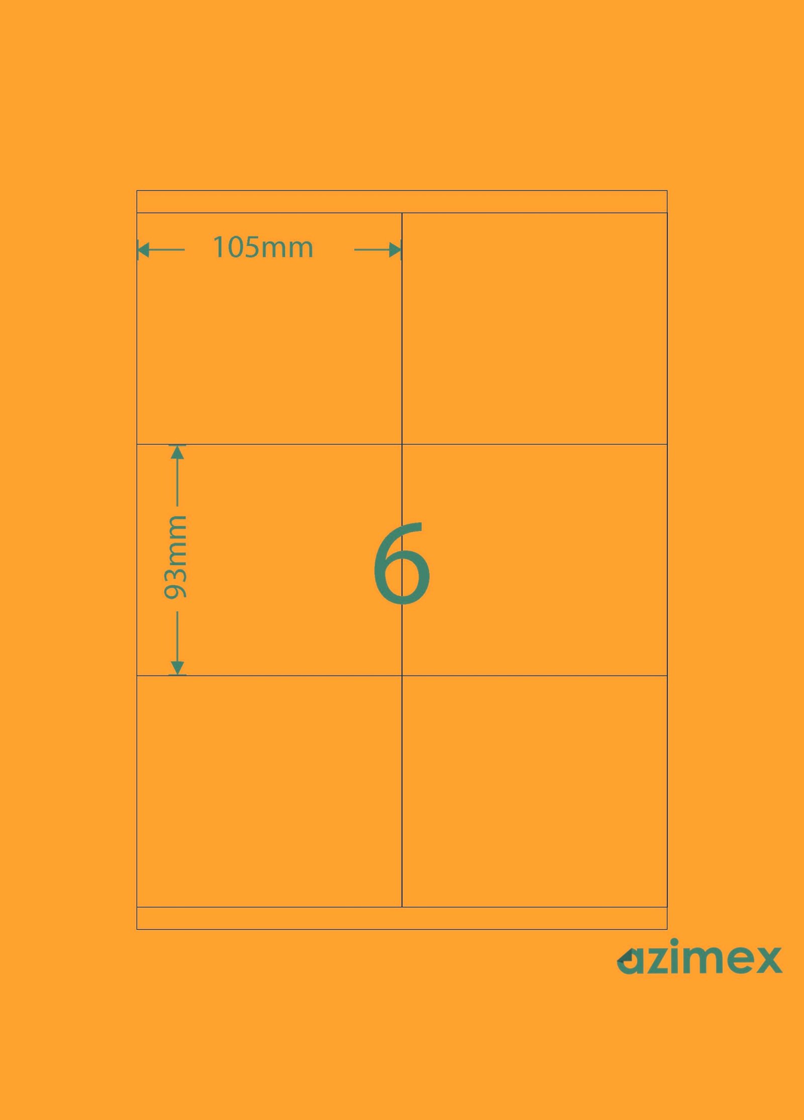 A4-6 labels, 105 x 93 mm, Azimex Labels on A4 sheet, 6 labels, multi-colored neon paper, 100 sheets/box