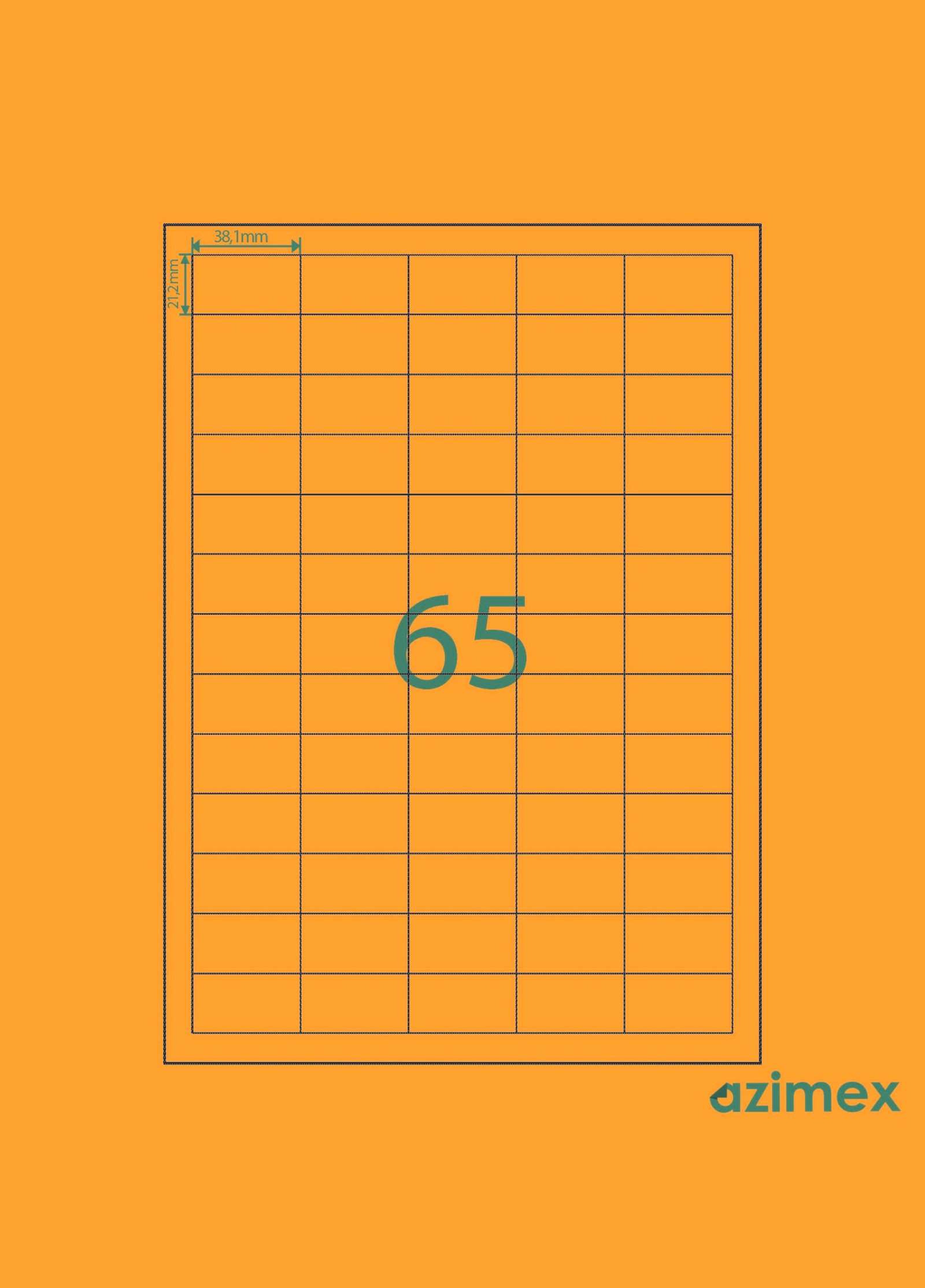 A4-65 labels, 38.1 x 21.2 mm, Azimex Labels on A4 sheet, 65 labels, multi-colored neon paper, 100 sheets/box